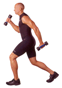 This is the basic movement. Pump and walk to warm up for 1 or 2 minutes before doing your F. L. and O. exercises, and as the rest break between the F. L. and O. exercises. You do one pump per step and stay in rhythm. This means that every time your right hand comes up, your left foot is coming off the ground. The actual arm movement is a curl, like a bicep curl, except you turn your wrist a 1/2 turn so your palms are facing each other and the Heavy Hand handle is pointing up. Walk for about 1-2 minutes (or 50 yards) or so to get your body warmed up.